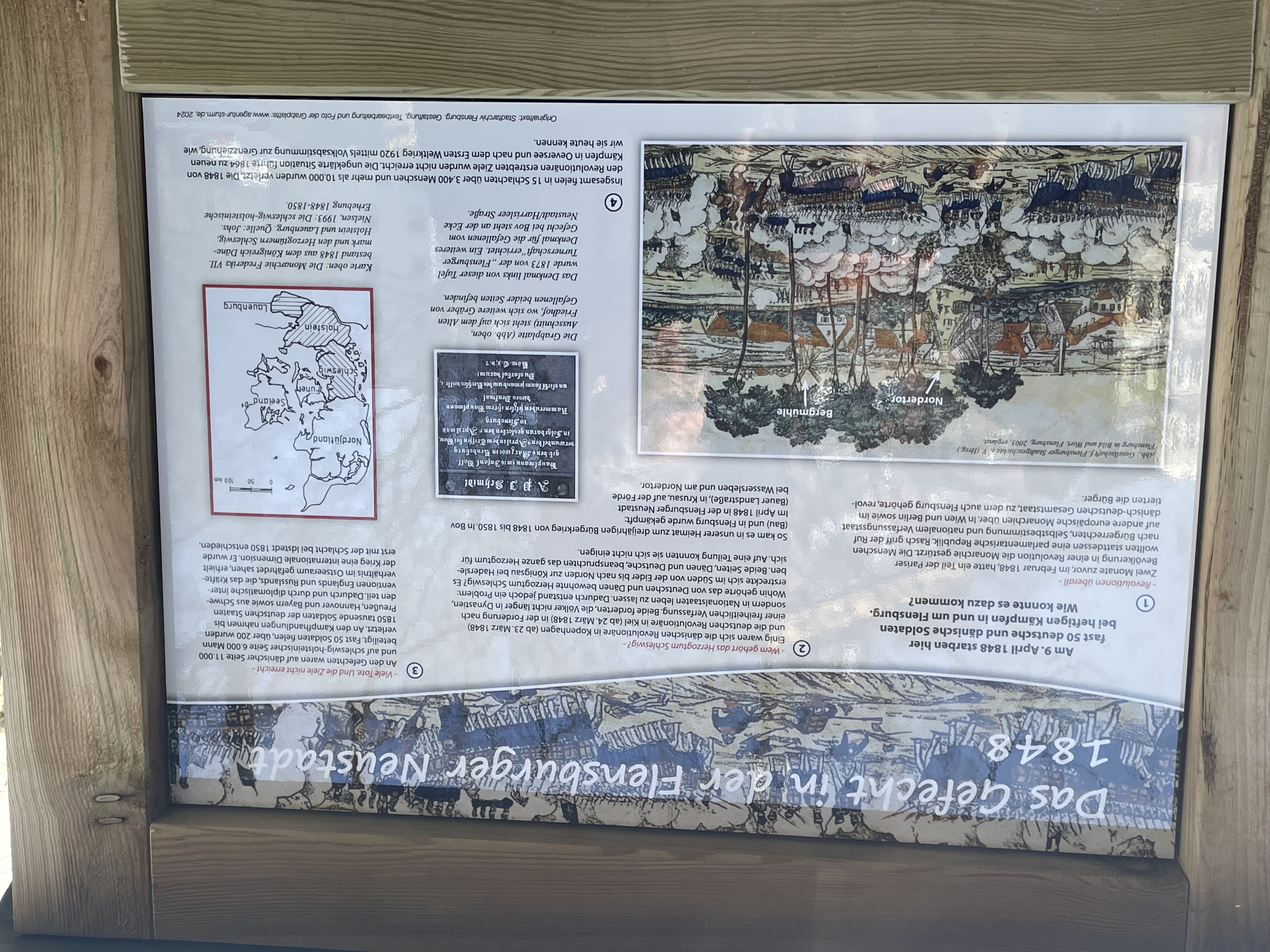 Seither kümmert sich die Vereine Flensburger Norden, Verein zur Erhaltung der Bergmühle und Dicker Willies Koppel um die Anlage und haben sie stetig verbessert und stabilisiert - durch Bepflanzung, Mühlsteine, ein kleines Geländer, eine neue Bank, Restaurierung der Goldschrift auf dem Gedenkstein - und nun heute durch das Aufstellen einer komplett neuen und neu gestalteten Info-Tafel.